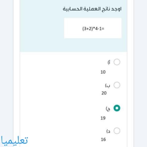 اوجد ناتج العملية الحسابية (3+2)*4-1=؟